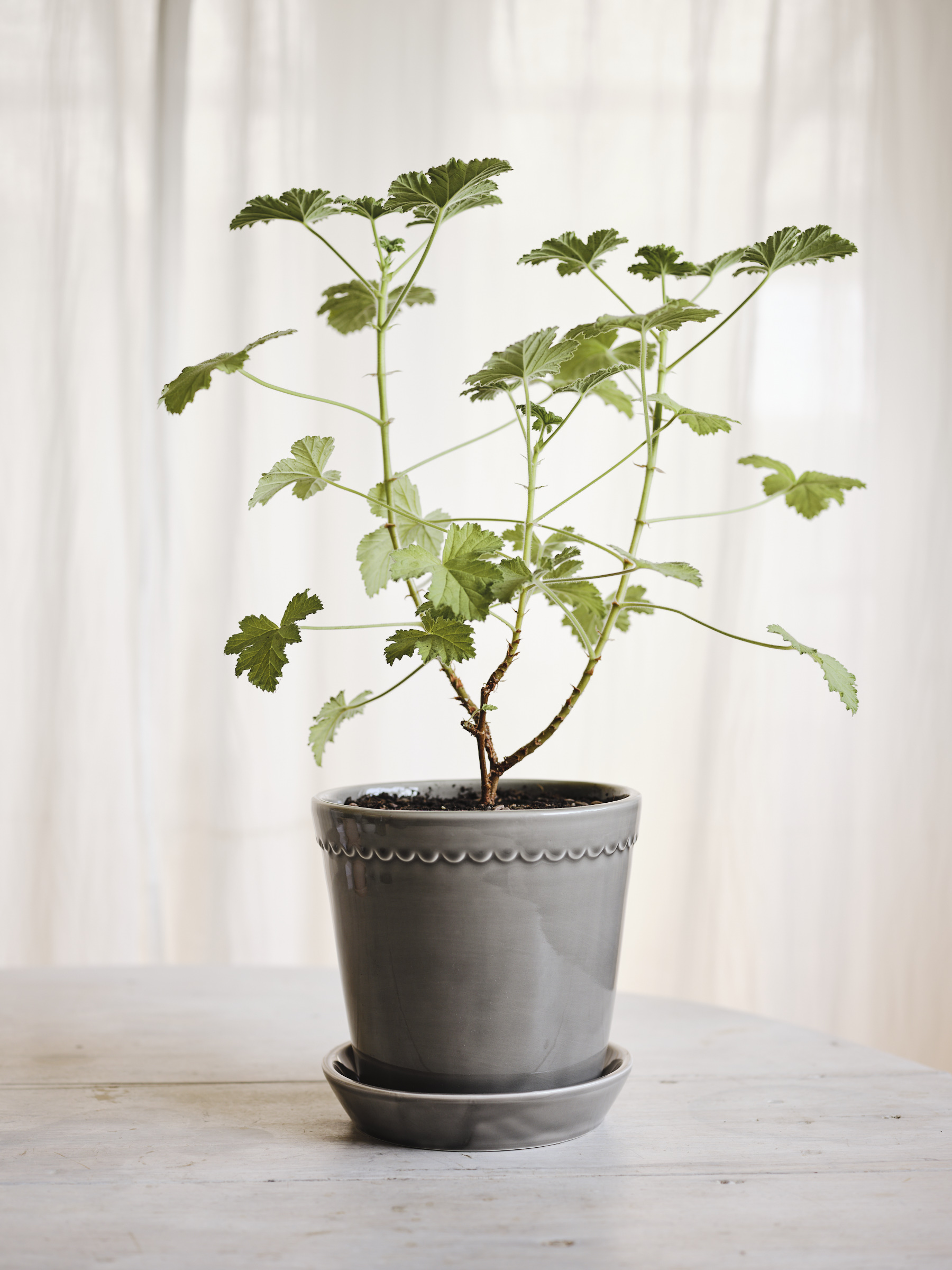 The Helena Pot features a scalloped clay fringe along the top edge, giving it a soft and classic look. The Pearl Grey color reflects the beauty of uncultured pearls from the depths of the ocean.