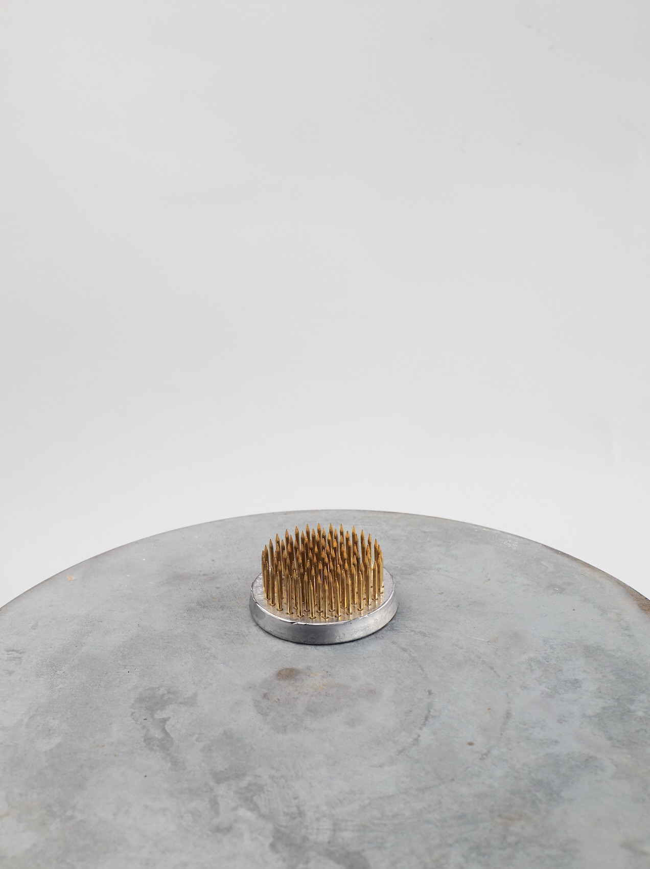 Introducing the Kenzan, the traditional Japanese flower holder designed to elevate your floral arrangements! Its sturdy metal base with spiked pins makes positioning stems a breeze, ensuring each bloom shines in all its glory.