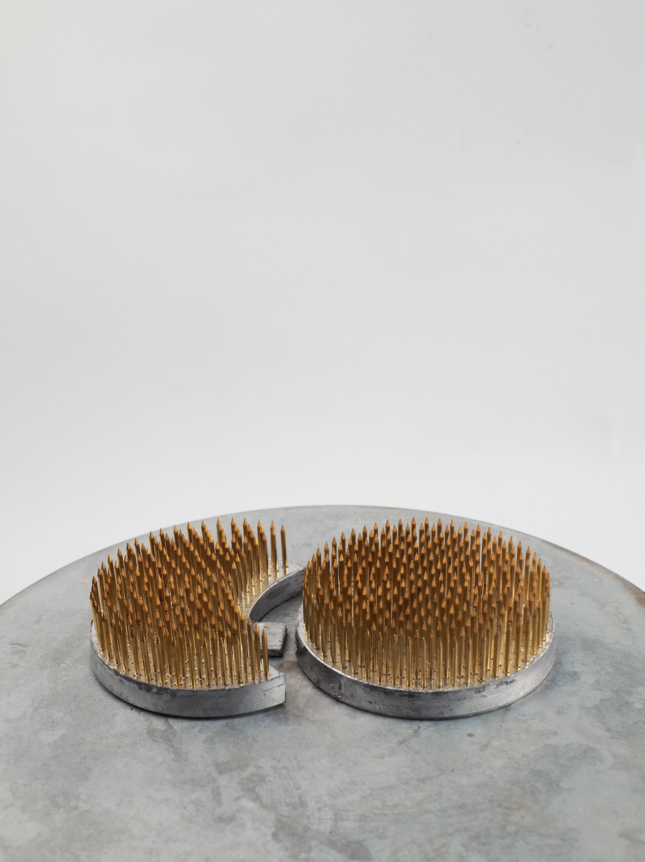 Introducing the Kenzan, the traditional Japanese flower holder designed to elevate your floral arrangements! Its sturdy metal base with spiked pins makes positioning stems a breeze, ensuring each bloom shines in all its glory.